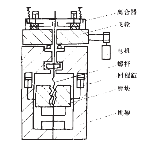 摩擦壓力機的主要問題是電機需帶動摩擦盤始終高速旋轉,而飛輪在一個循環中還需改變旋轉方向,在換向時飛輪和摩擦盤產生嚴重打滑。這不但降低了傳動效率,也加劇了摩擦帶的磨損,從而增加了制造和維修費用,未能得到廣泛應用。摩擦壓力機效率低,打擊力控制不精確,不適于大噸位。